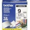 Brother Laminated Tape 8m X 9mm White On Black