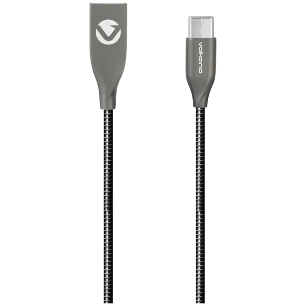 Volkano Iron Series Round Metallic Spring Type-c Cable 1.2m – Black